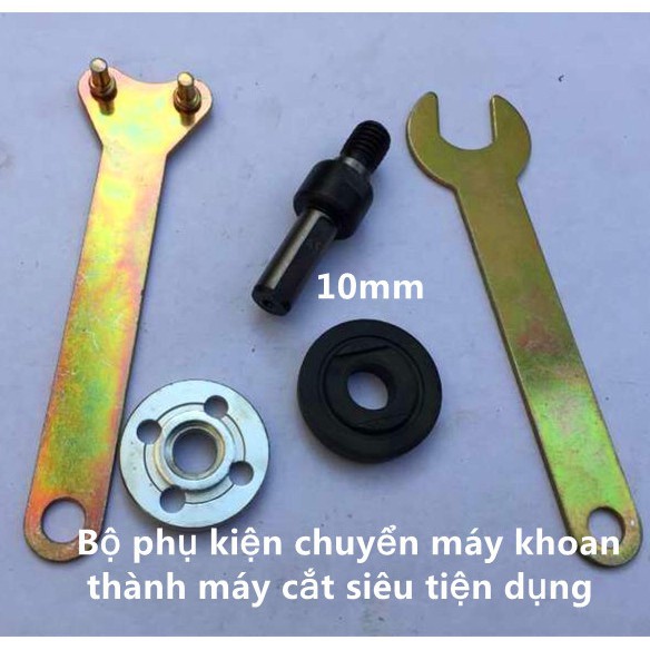 Bộ phụ kiện chuyển đổi máy khoan thành máy cưa, cắt, mài... trục 10mm