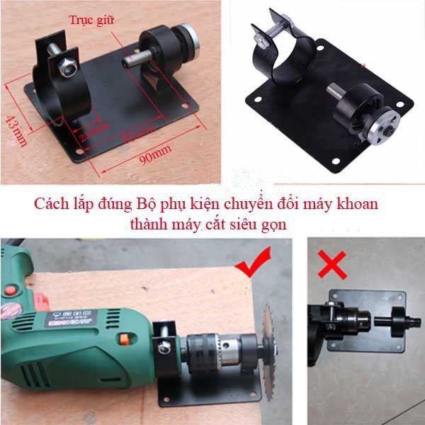 Bộ phụ kiện chuyển máy khoan thành máy cắt với thiết kế khoa học hơn, có thêm chân đế giữ cố định máy khoan trên mặt bàn, an toàn cho người sử dụng và độ chính xác cao hơn.Nhà bạn đã có sẵn máy khoan tay, nhưng còn thiếu máy cắt? bộ phụ kiện này sẽ giúp bạn có luôn cả hai loại máy này trong nhà luôn mà không cần phải đi mua thêm máy cắt.