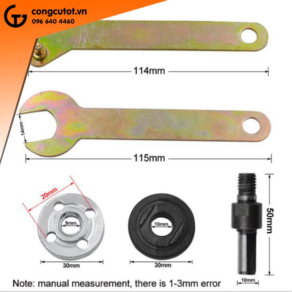 Bộ chuyển đổi phù hợp với hầu hết các loại máy khoan cầm tay với đầu bắt lưỡi thông dụng thích hợp sử dụng cho các loại lưỡi cắt mài có kích thước từ 100-110mm.