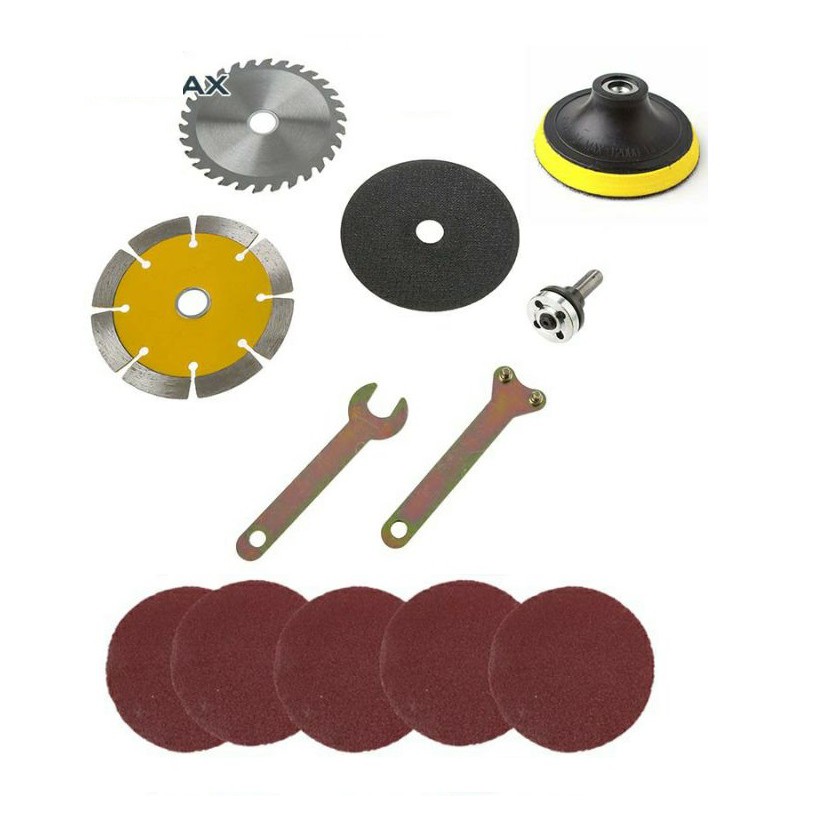 Với bộ phụ kiện chuyển máy khoan thành máy cắt bạn sẽ nhanh chóng có ngay một chiếc máy đa năng từ chiếc máy khoan cầm tay thông thường và có thêm các chức năng cưa, cắt, mài, đánh bóng...v.vNhà bạn đã có sẵn máy khoan tay, nhưng còn thiếu máy cắt, máy cưa, máy mài?. Bộ phụ kiện này sẽ giúp bạn có luôn cả ba loại máy này trong nhà luôn mà không cần phải đi mua thêm máy cắt.