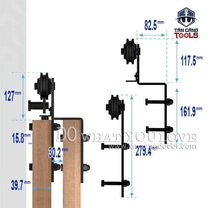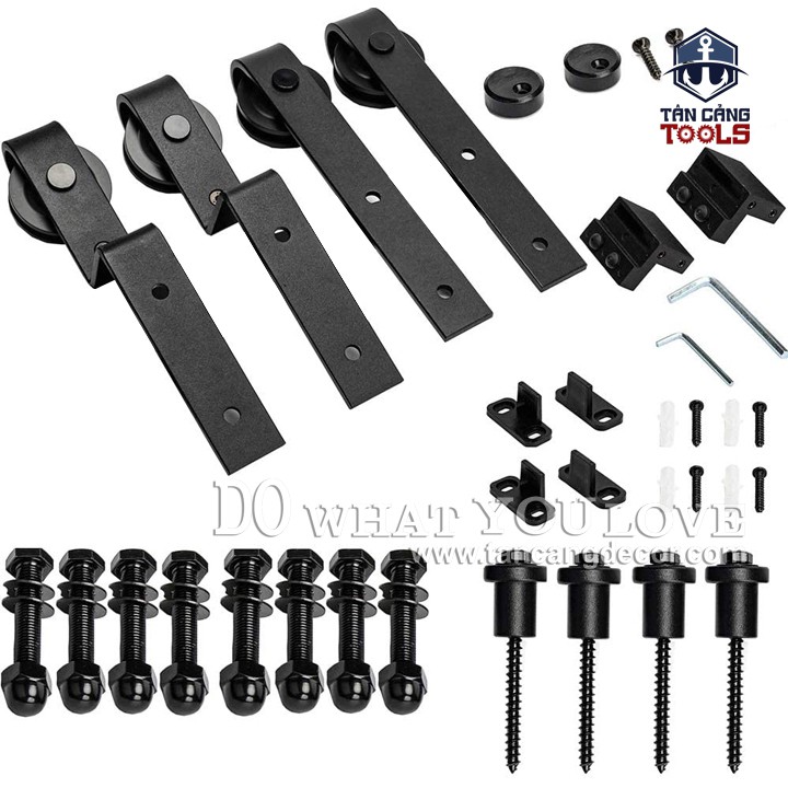 * Lưu Ý : bộ phụ kiện chưa bao gồm ray dẫn hướng ( Có thể đặt theo yêu cầu tại Shop Tân Cảng Decor tùy vào bề rộng cửa hoặc Bạn có thể đặt mua dễ dàng ngoài tiệm sắt,yêu cầu độ dày 5mm -6mm).