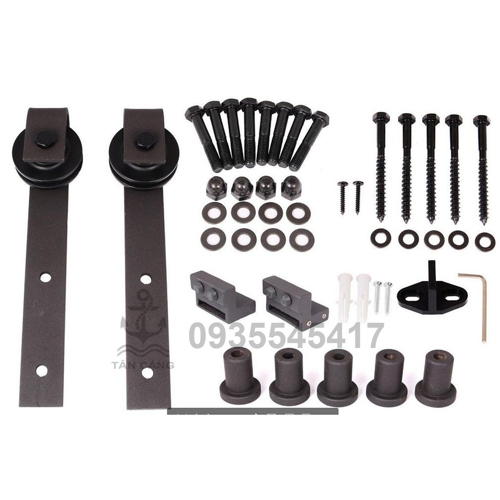 * Lưu Ý : bộ phụ kiện chưa bao gồm ray dẫn hướng ( Có thể đặt theo yêu cầu tại Shop Tân Cảng Decor tùy vào bề rộng cửa hoặc Bạn có thể đặt mua dễ dàng ngoài tiệm sắt,yêu cầu độ dày 5mm -6mm).