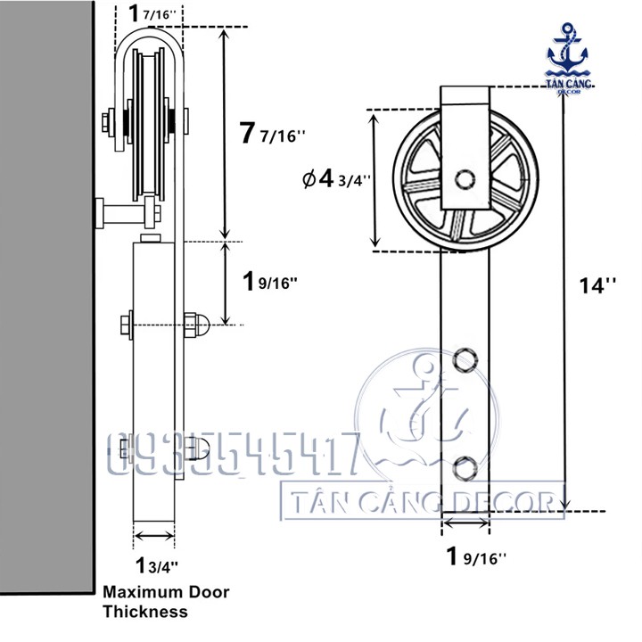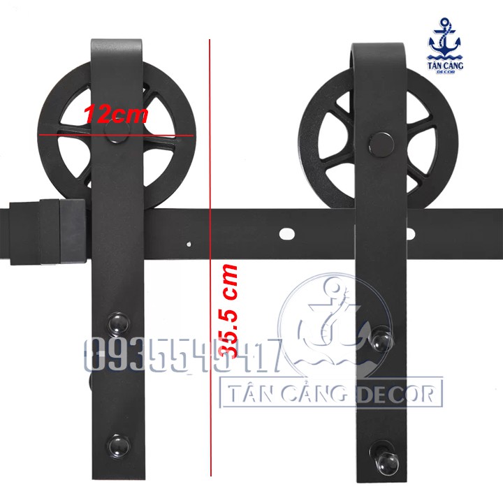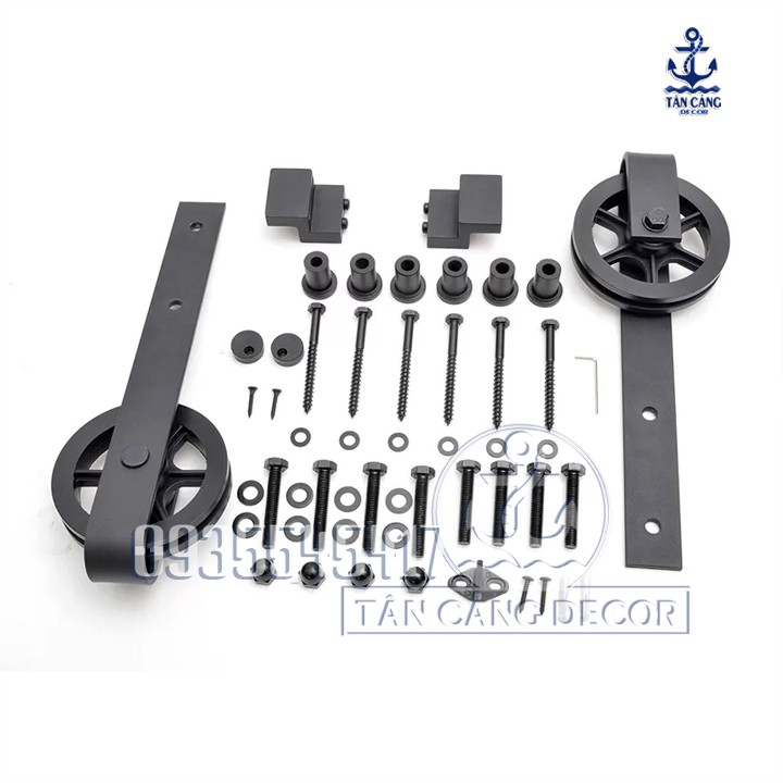 * Lưu Ý : bộ phụ kiện chưa bao gồm ray dẫn hướng ( Có thể đặt theo yêu cầu tại Shop Tân Cảng Decor tùy vào bề rộng cửa hoặc Bạn có thể đặt mua dễ dàng ngoài tiệm sắt,yêu cầu độ dày 5mm -6mm).