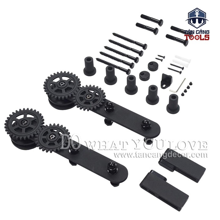* Lưu Ý : bộ phụ kiện chưa bao gồm ray dẫn hướng ( Có thể đặt theo yêu cầu tại Shop Tân Cảng Decor tùy vào bề rộng cửa hoặc Bạn có thể đặt mua dễ dàng ngoài tiệm sắt,yêu cầu độ dày 5mm -6mm).