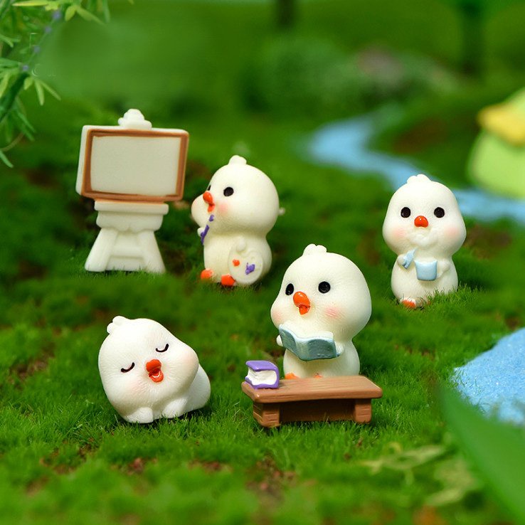 Phụ kiện decor mini trang trí bàn học mô hình cuộc sống ngày thường của gà con tiểu cảnh chậu cây sen đá terrarium