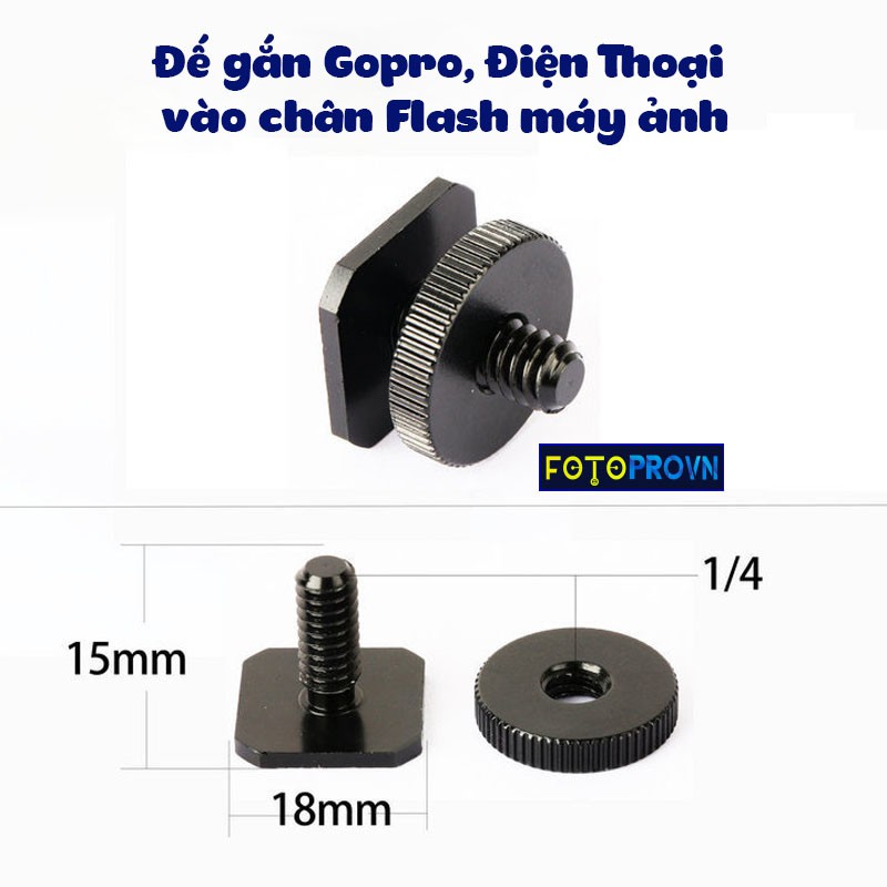 Đây là phụ kiện dùng gắn trên chân đế flash máy ảnh làm giá đỡ trực tiếp để gắn thêm một thiết bị quay phim như gopro, máy ảnh hoặc điện thoại.