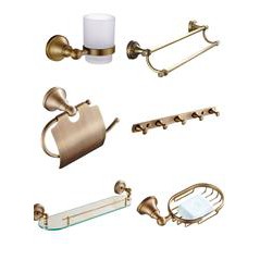 Bộ phụ kiện đồng đặc mạ vàng gồm có 6 món:Móc áo,dàn vắt khăn,kệ cốc đôi,nan xà phòng,lô giấy,kệ kínhMã sản phẩm:GR-BMV