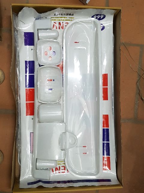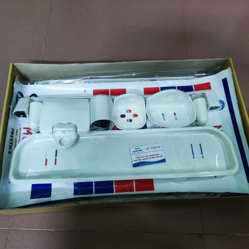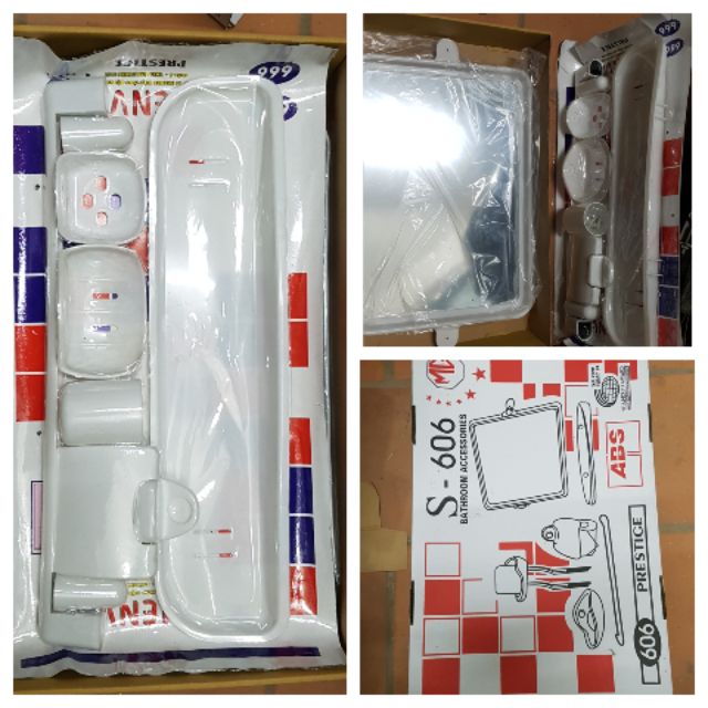- Bộ kính nhựa 6 món bao gồm: Gương soi vành nhựa+ kệ dưới gương+ Máng khăn+ kệ giấy + kệ ly xúc miệng, giá cắm bàn chải+ kệ để xà bông cục
