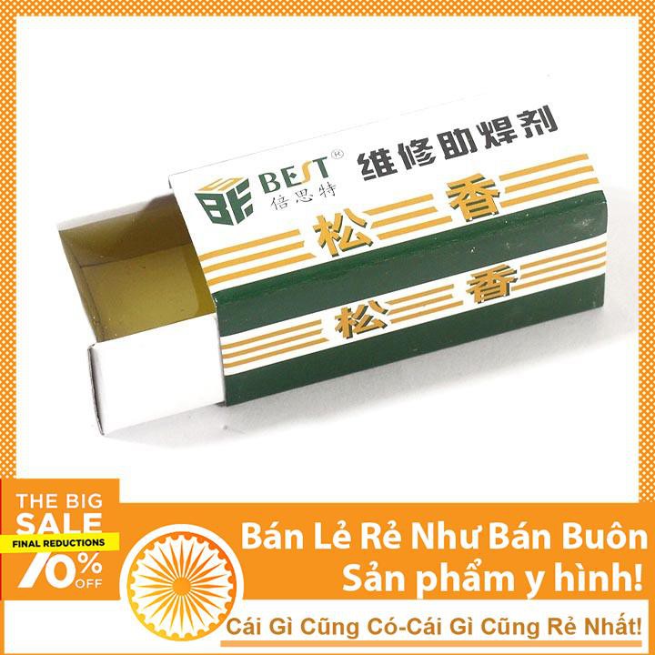 - 01 Nhựa thông hộp: Là một chất xúc tác giúp cho quá trình hàn được dễ dàng hơn do khi bị đun nóng nhựa thông phân hủy ra một chất có tính acid có tính tẩy bề mặt cần hàn. Nhựa thông còn làm giảm sức căng bề mặt của thiếc hàn do đó giúp thiếc hàn bám vào mối hàn mịn hơn. làm cho thiếc dính ướt, bám vào bề mặt hàn, giúp mối hàn cách ly với môi trườngxung quanh như nhiệt độ, oxy, độ ẩm...