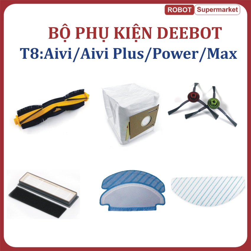 Thiết Bị Điện Gia Dụng > Thiết bị điện gia dụng nhỏ > Máy hút bụi & Thiết bị làm sạch sàn || Bộ phụ kiện khăn, chổi cạnh, chổi chính, chổi giữa, lọc bụi Robot Ecovacs Deebot T8 Aivi, Power, Max,Aivi Plus, N8 ProCòn hàng