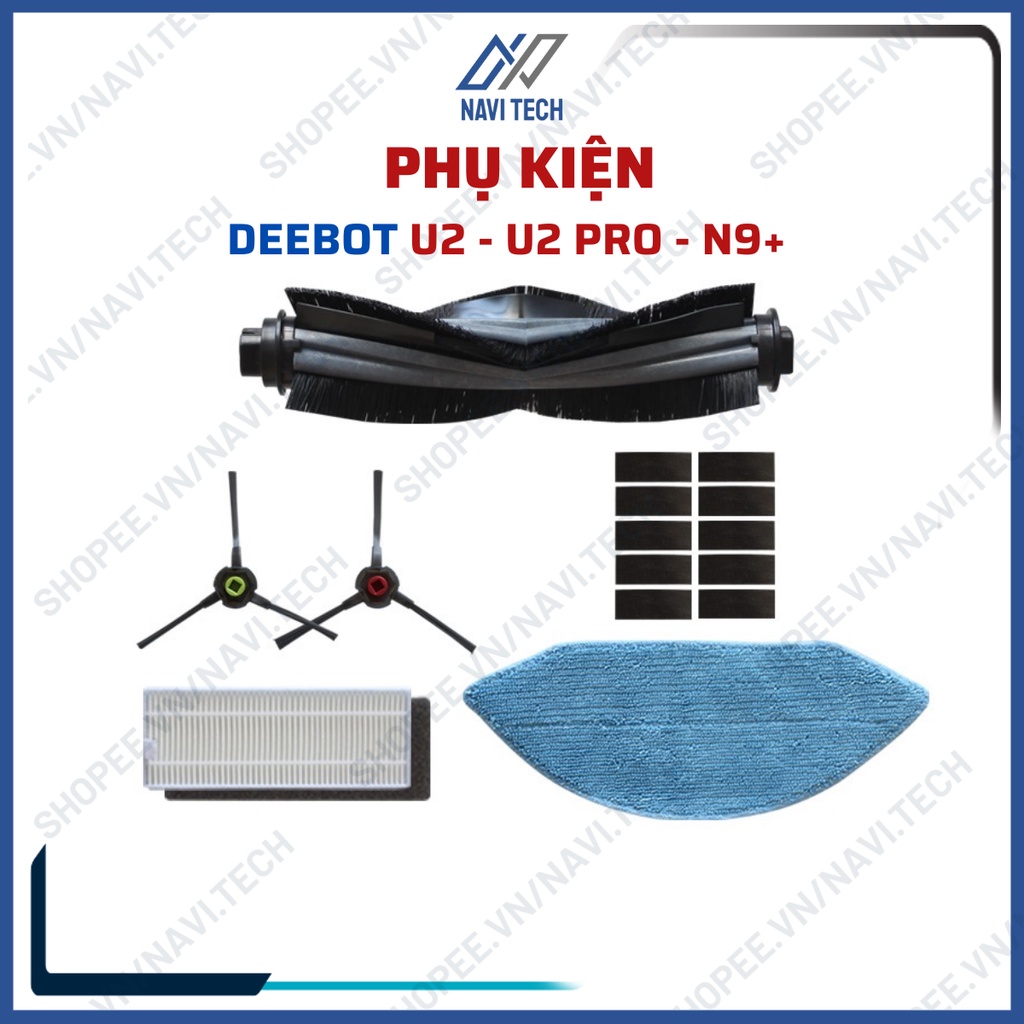 Giới thiệu Phụ kiện khăn, giẻ, lọc hepa, chổi cuộn, chổi chính, chổi cạnh Robot hút bụi Ecovacs Deebot U2, U2 Pro, N9 Plus, N9+, N3