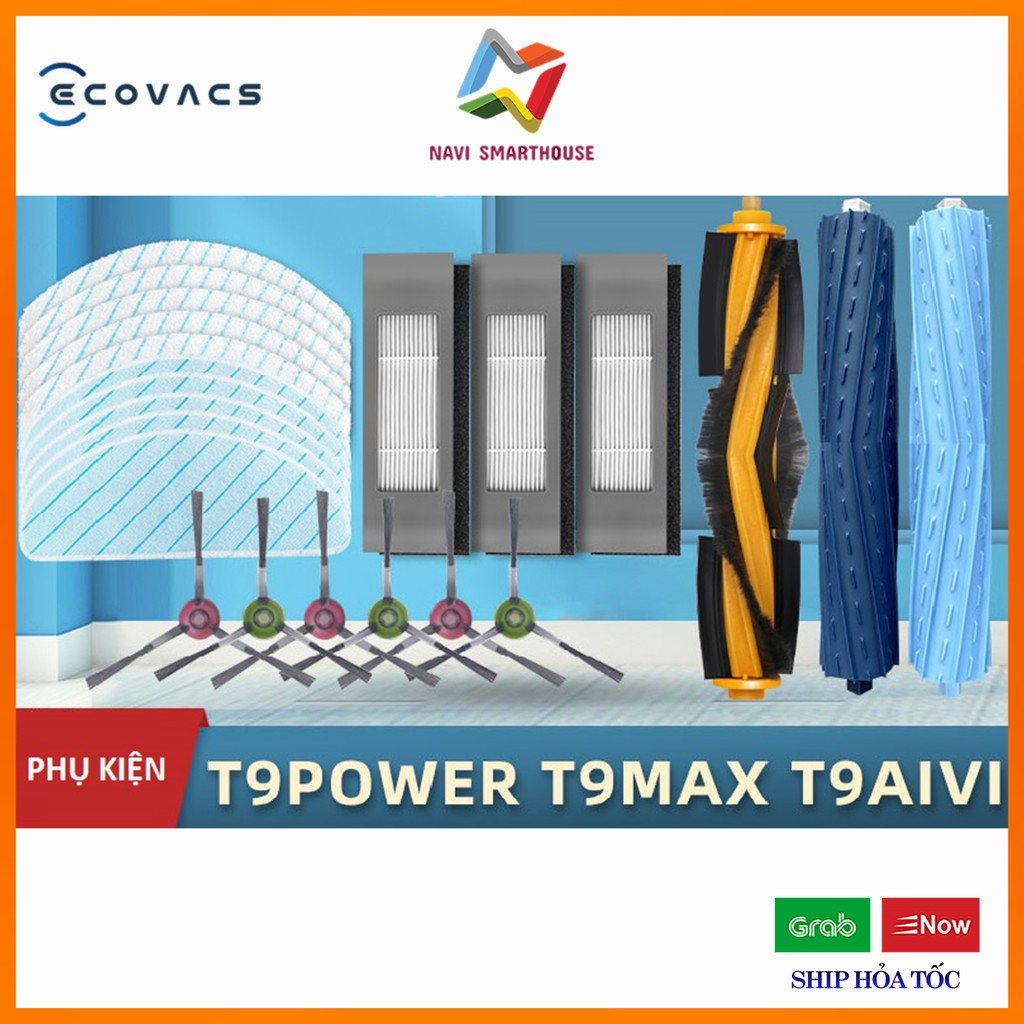 Phụ kiện khăn lau, chổi cạnh, chổi chính, màng lọc hepa cho Robot Ecovasc Deebot T9 Aivi,T9 Power ,T9 Max T9 Aivi Plus