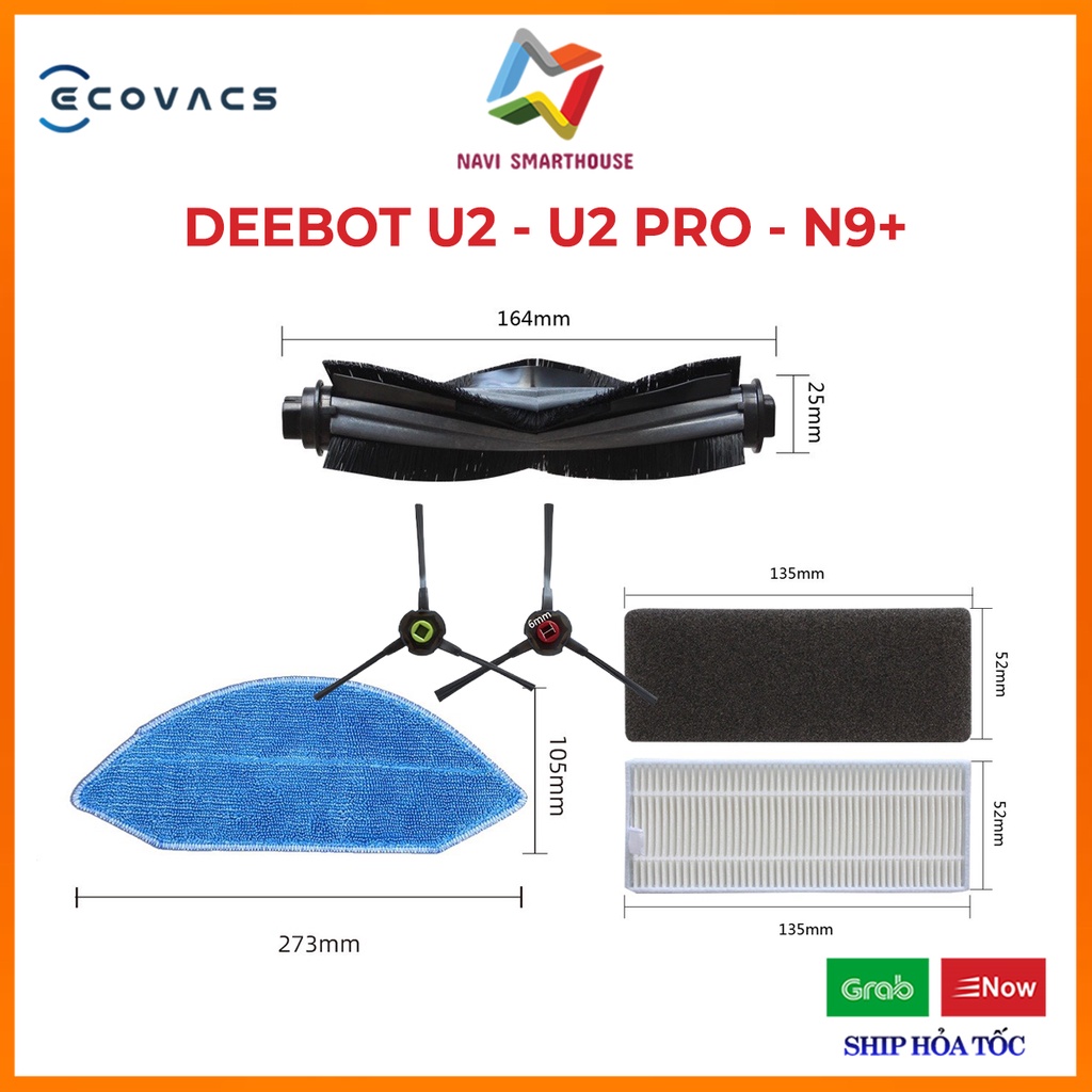 Phụ kiện khăn, giẻ, lọc hepa, chổi cuộn, chổi chính, chổi cạnh Robot hút bụi Ecovacs Deebot U2, U2 Pro, N9 Plus, N9+