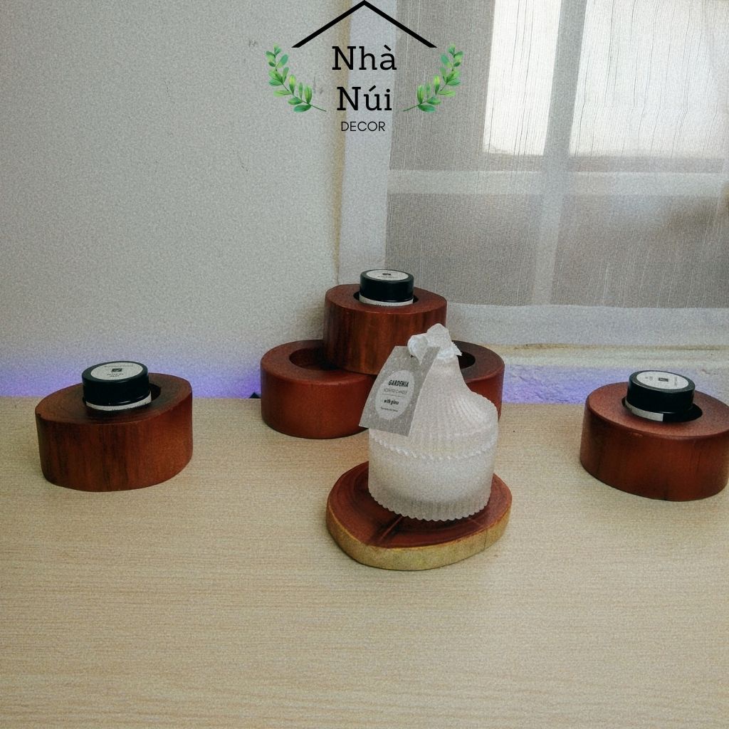 Tên sản phẩm: Phụ kiện, khay gỗ để đựng nến thơm Decor trang trí, lót cốc, ly đa năng phong cách Retro D2 Decor Nhà NúiNHÀ NÚI CAM KẾT: