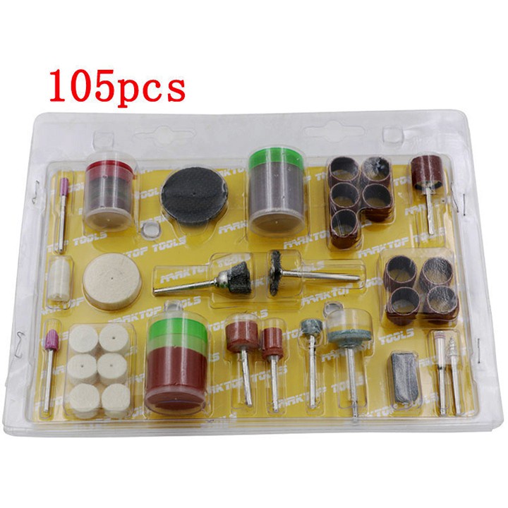 Bộ phụ kiện máy khoan mài điện mini cầm tay 105 chiếc đa năng dùng quay, mài, đánh bóng gỗ