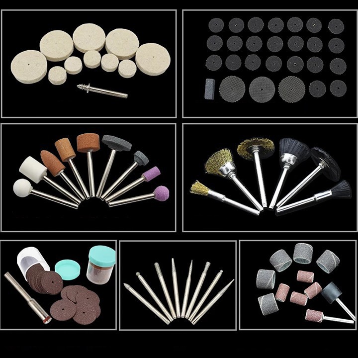 _ Bộ phụ kiện là dụng cụ hỗ trợ đắc lực cho dân DIY như làm lũa gỗ, khoan, khắc, mài, cắt các vật kích thước nhỏ, yêu cầu độ chính xác cực cao, trên các loại chất liệu: đá, kính, kim loại, nhựa, gỗ, phi kim…