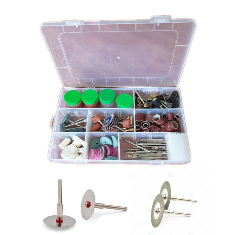 Nhà cửa & Đời sống > Dụng cụ & Thiết bị tiện ích > Dụng cụ > Cưa, máy cắt & máy mài || Bộ phụ kiện máy mài khắc đánh bóng mini đa năng 179 chi tiết kèm 2 lưỡi cắt răng cắt gỗ, nhựa và 2 đĩa cắt kim cươngCòn hàng