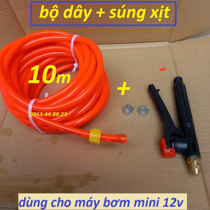 Bộ phụ kiện máy rửa xe mini 12v kèm súng xịt (khóa bóp - dây 5m - 8m - 10m)