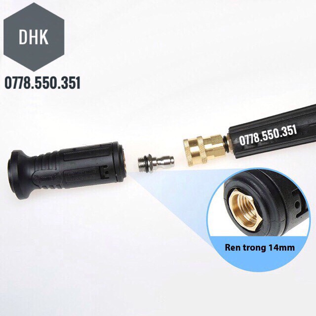 - Dùng để nối súng phun xịt rửa xe với các loại béc phun, bình tạo bọt tuyết hay bình đựng nước rửa xe...