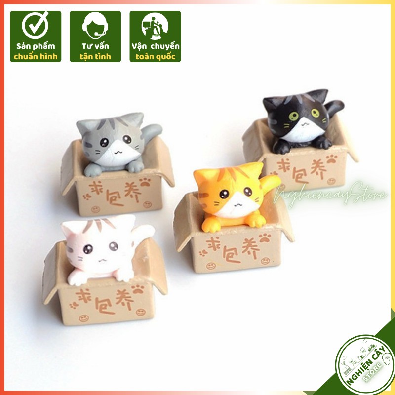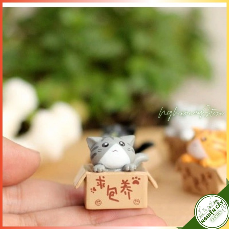 Phụ kiện Mèo trong hộp quà trang trí tiểu cảnh, cây cảnh, sen đá