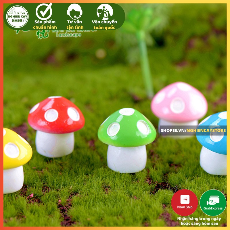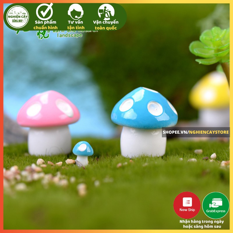 Phụ kiện nấm mini là phụ kiện không thể thiếu trong quá trình trang trí tiểu cảnh, tạo các tác phẩm terrarium đẹp mắt. Tạo cảnh quan sinh động hơn cho tác phẩm vi mô của bạn. Đồng thời cũng có thể sử dụng để trang tri cho những chậu cây để bàn. Giá thành sản phẩm rẻ, dễ trang trí, phù hợp với nhiều đối tượng khách hàng – học sinh, sinh viên, nhân viên văn phòng …