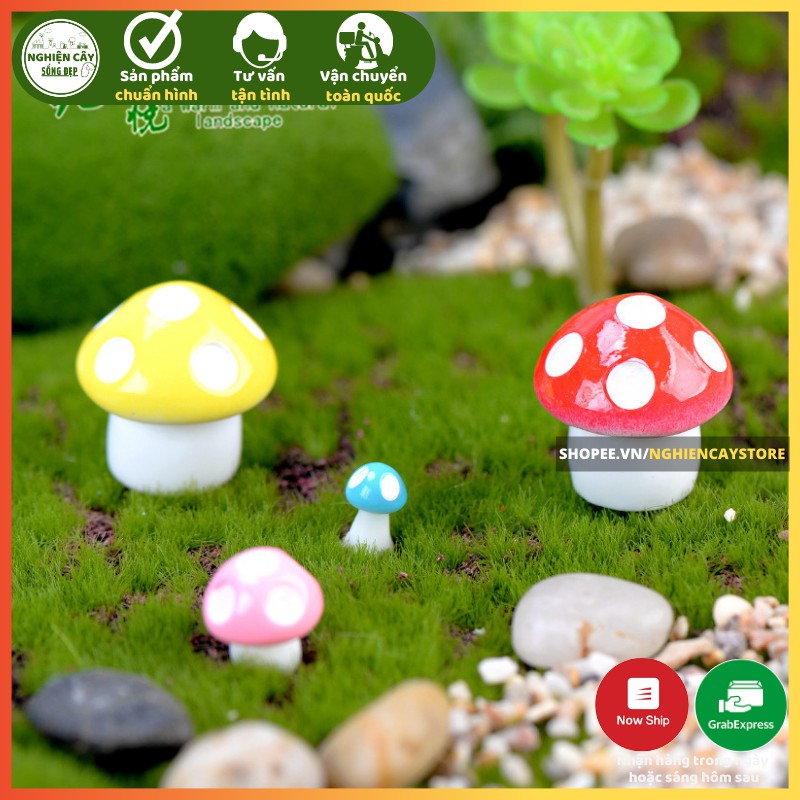 Giới thiệu Phụ kiện Nấm nhựa trang trí tiểu cảnh, cây cảnh, sen đá