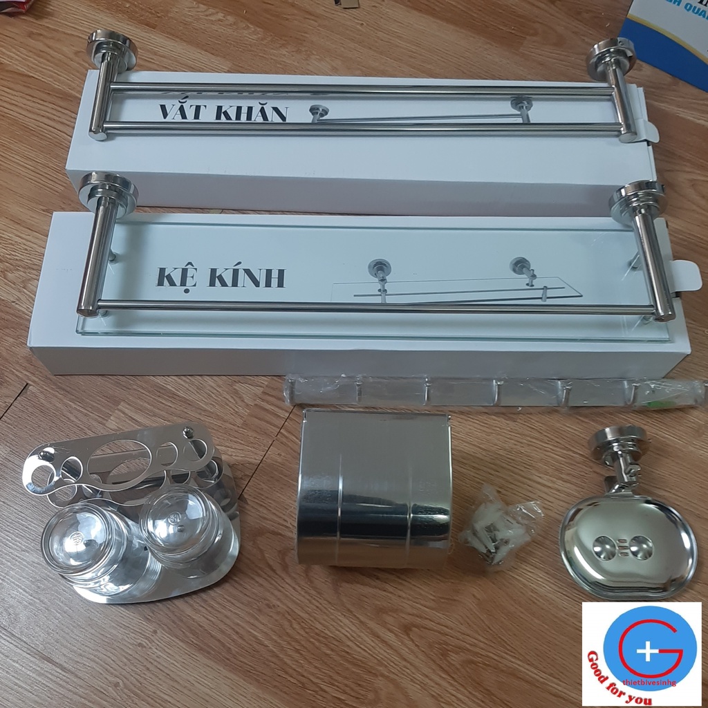 Bộ Phụ kiện nhà tắm cao cấp Chất Liệu 100% Inox✔️Bộ sản phẩm bao gồm: