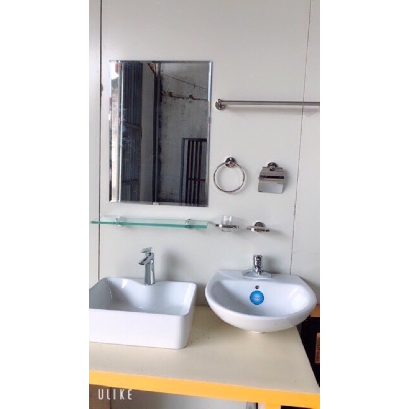 Bộ phụ kiện nhà tắm 6 món inoxBộ phụ kiện bao gồm : kệ kính , lô giấy , vắt khăn , kệ cốc , vắt khăn đơn .