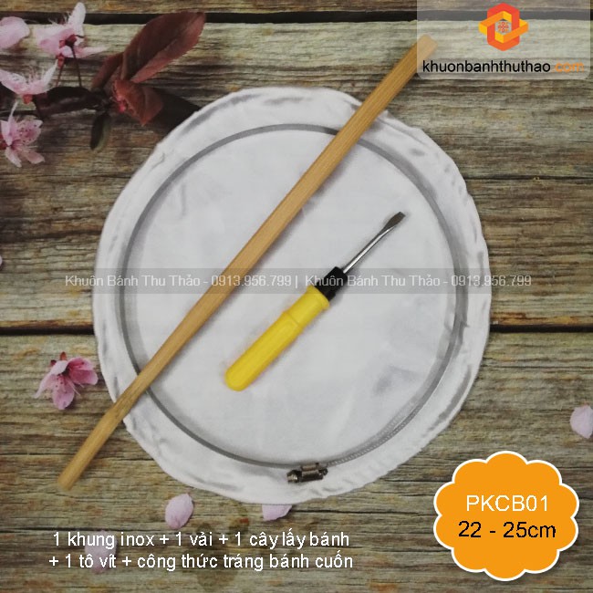 Với bộ dụng cụ nồi bánh cuốn (cơ bản) của thương hiệu Bahato + Nồi nhà bạn = Bộ dụng cụ làm bánh cuốn, bánh ướt, bánh mướt cực kỳ chất.✔ Combo 1 (PK 22-25cm): Bộ phụ kiện tráng bánh cuốn trung (Dùng cho nồi có kích thước nồi 22cm tới 25cm).