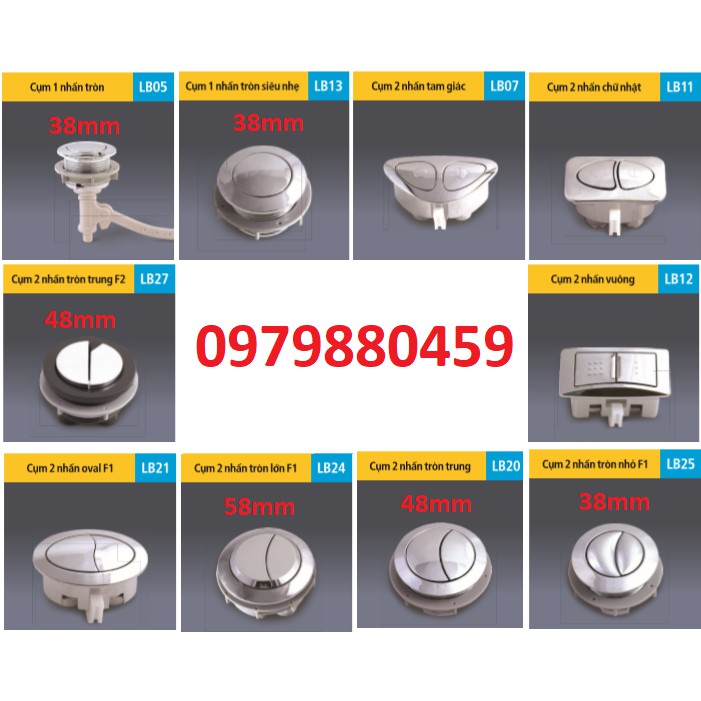 Nhà cửa & Đời sống > Đồ dùng phòng tắm > Bồn cầu, ghế và nắp bồn cầu || PHỤ KIỆN NÚT NHẤN BÀN CẦU VUÔNG, TRÒN, Ô VAN, 1 NHẤN, 2 NHẤNCòn hàng