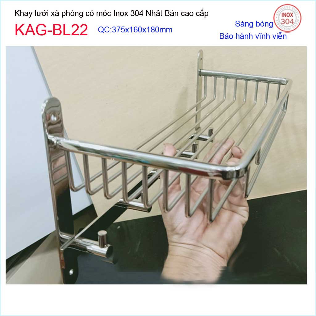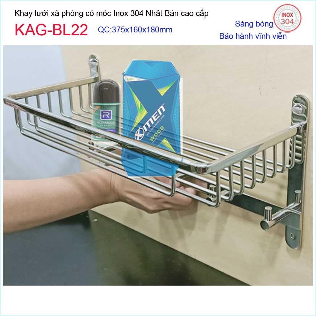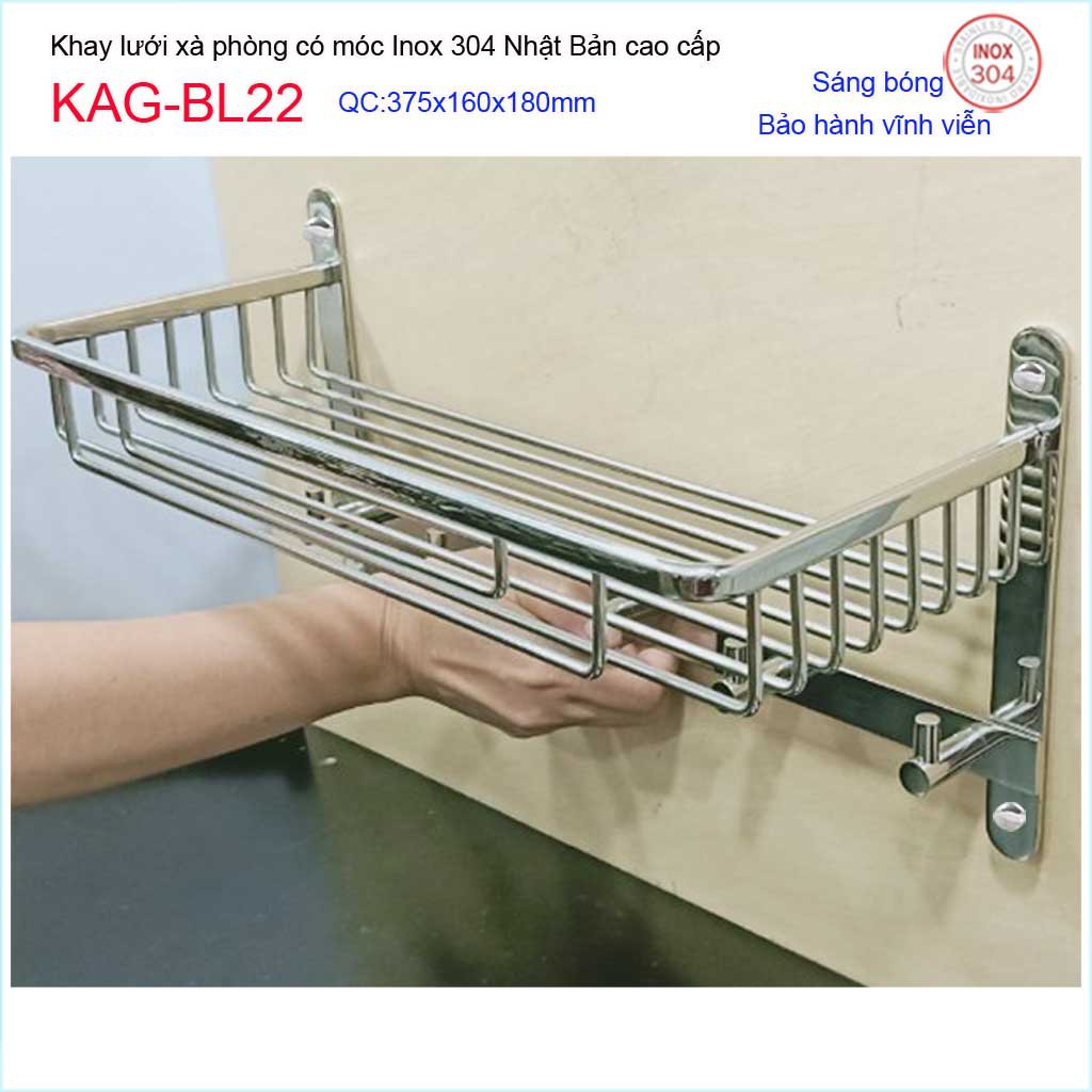 Giới thiệu Khay lưới xà phòng KAG-BL22 Inox Nhật Bản, kệ xà bông bồn tắm 375x160 mm SUS304 dập khuôn cao cấp sắc sảo sang trọng