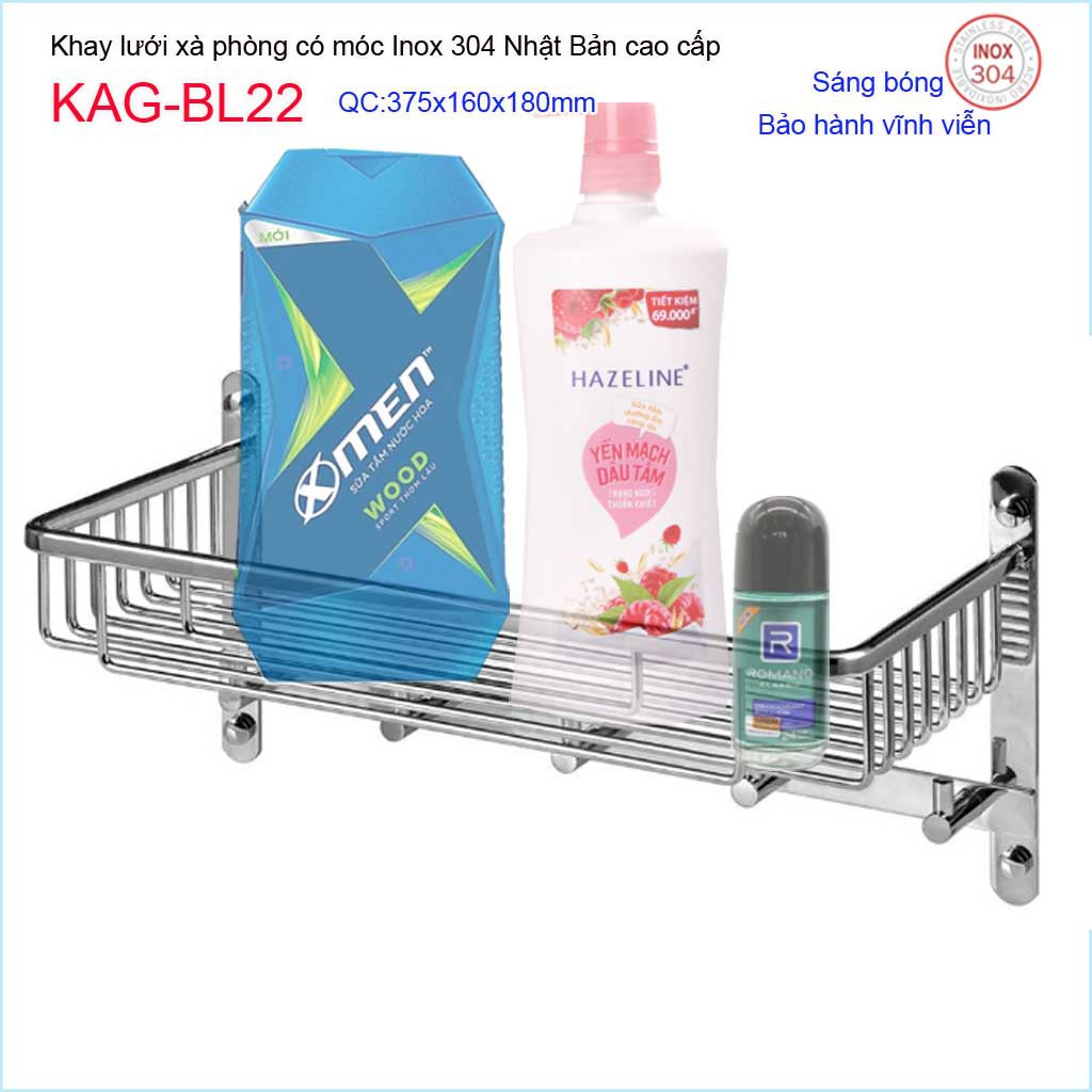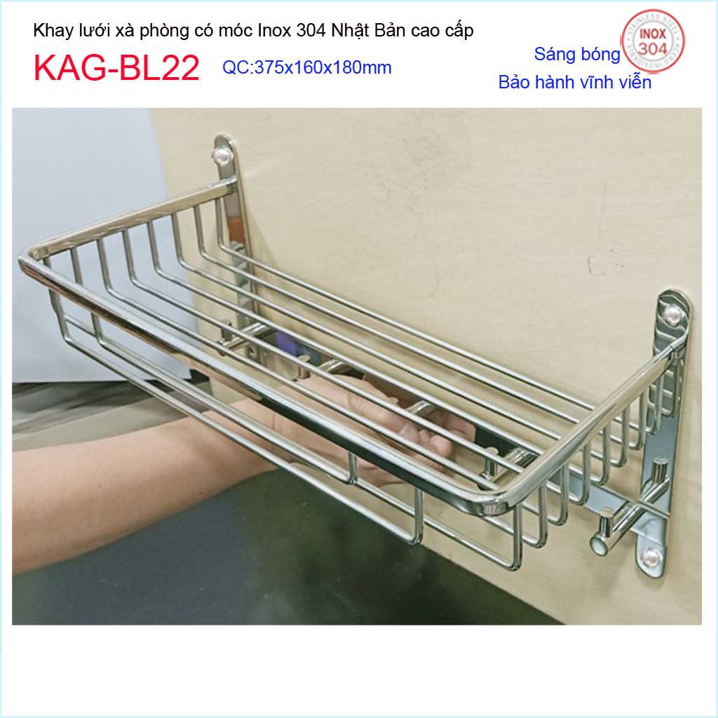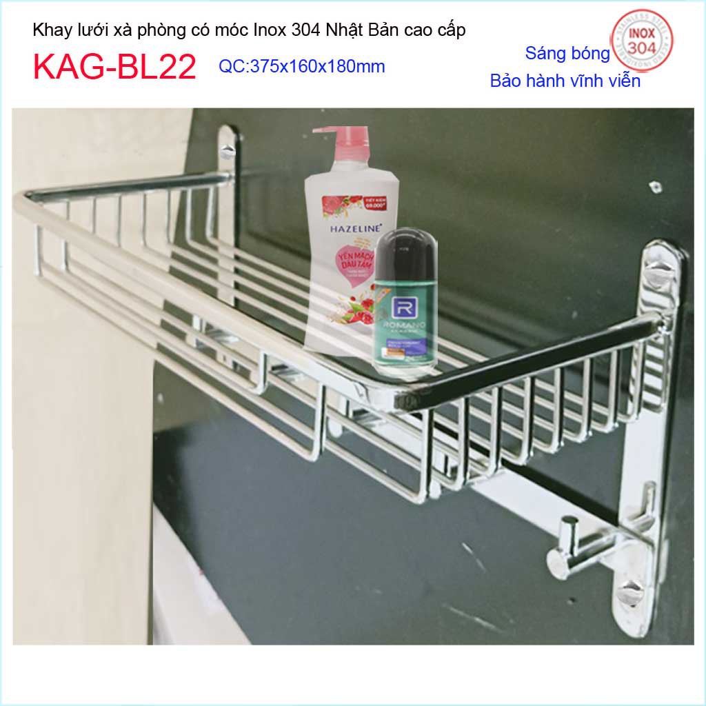 Giới thiệu Khay lưới xà phòng KAG-BL22 Inox Nhật Bản, kệ xà bông bồn tắm 375x160 mm SUS304 dập khuôn cao cấp sắc sảo sang trọng