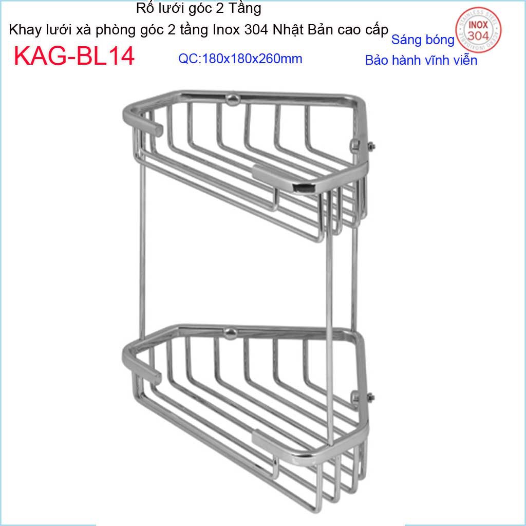 Kệ góc 2 tầng 180x180mm KAG-BL14, kệ rổ xà phòng góc tam giác SUS304 Nhật cao cấp inox đặc sáng bóng tuyệt đẹp