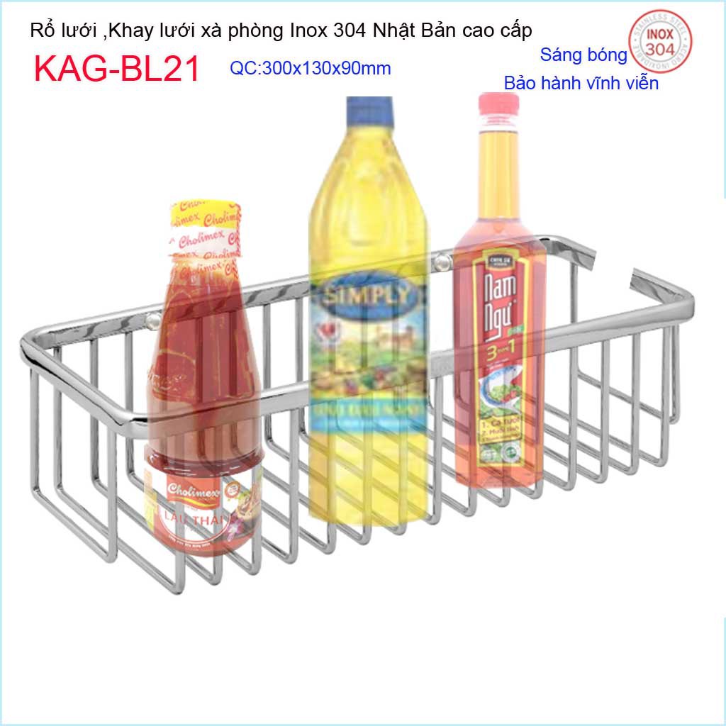 Khay lưới xà phòng KAG-BL21 Inox Nhật Bản, kệ xà bông dài 300x130 mm SUS304 dập khuôn cao cấp sắc sảo đến từng chi tiết