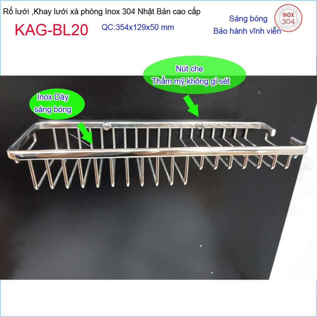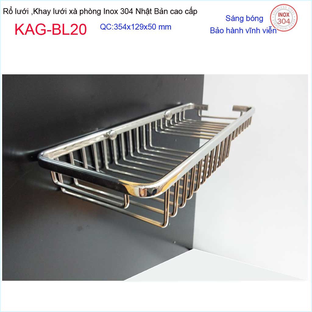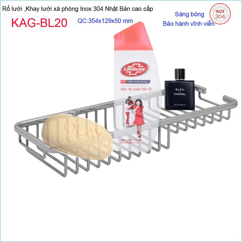 Khay lưới xà phòng KAG-BL20 Inox Nhật Bản, kệ xà bông dài 354x129 mm SUS304 dập khuôn cao cấp sắc sảo đến từng chi tiết
