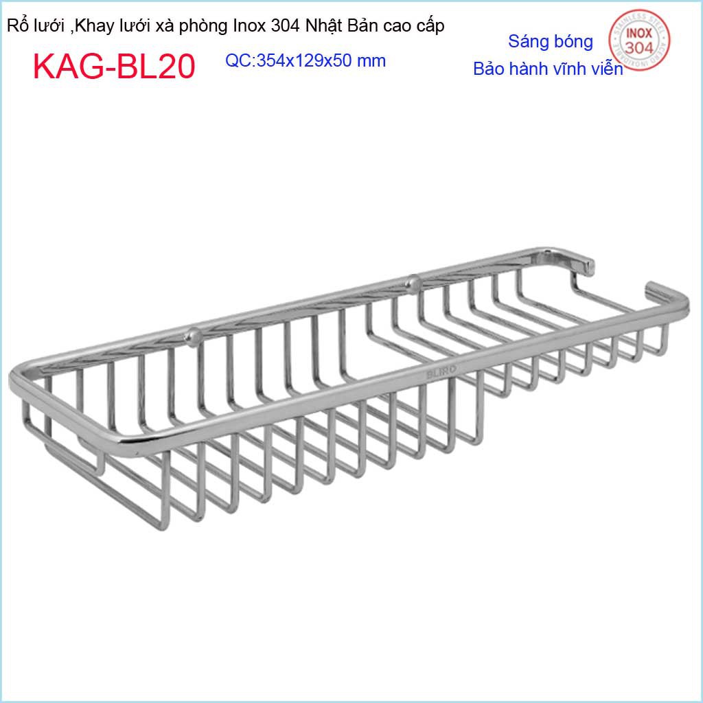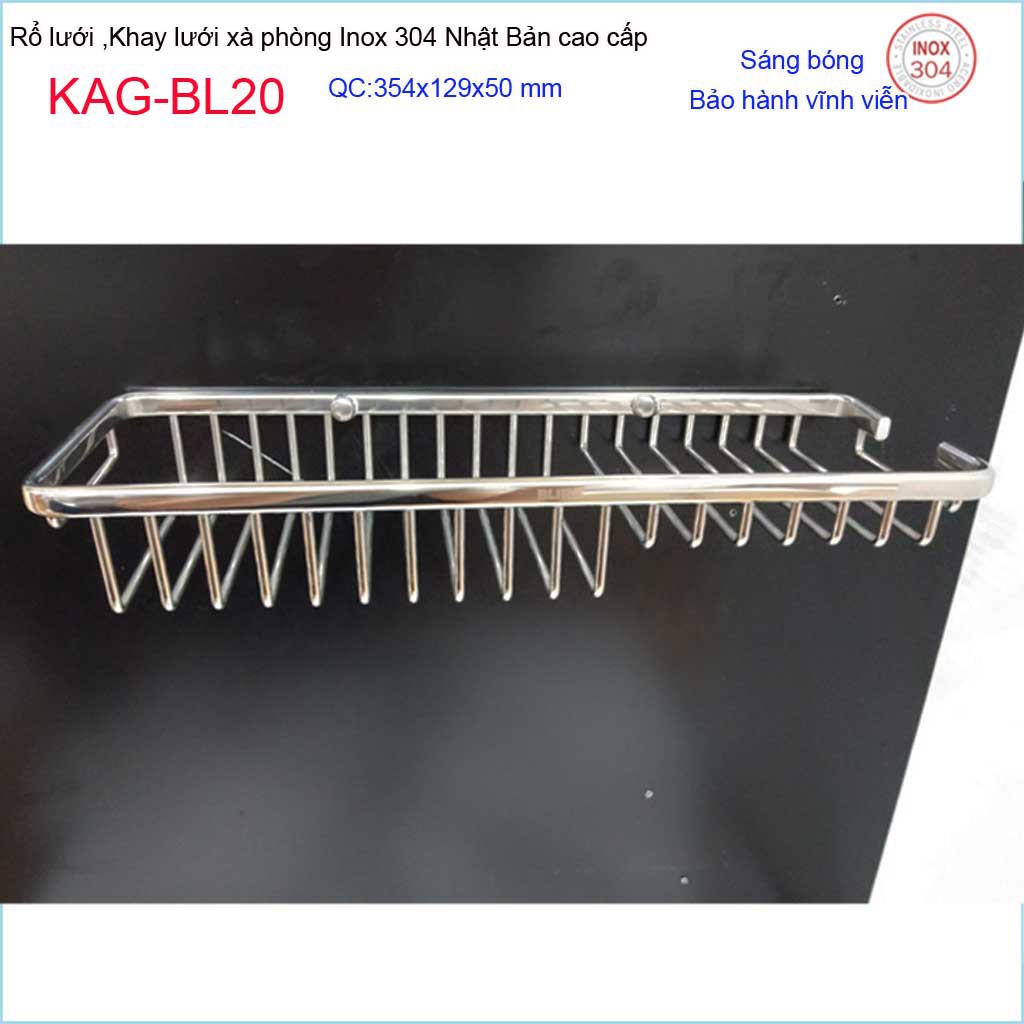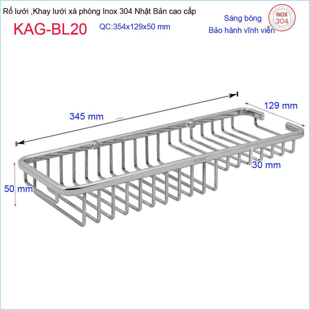 Khay lưới xà phòng KAG-BL20 Inox Nhật Bản, kệ xà bông dài 354x129 mm SUS304 dập khuôn cao cấp sắc sảo đến từng chi tiết