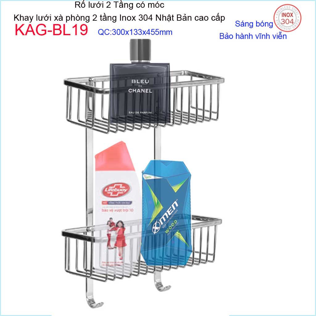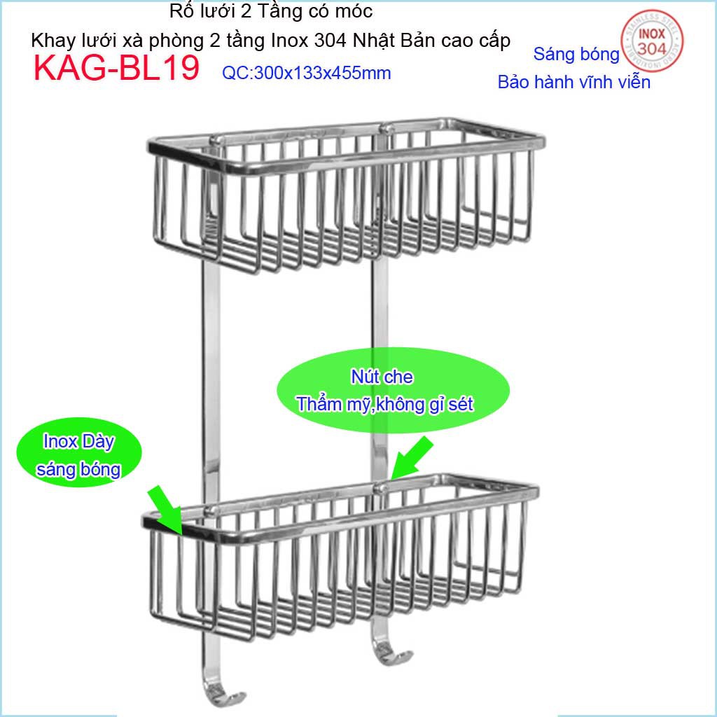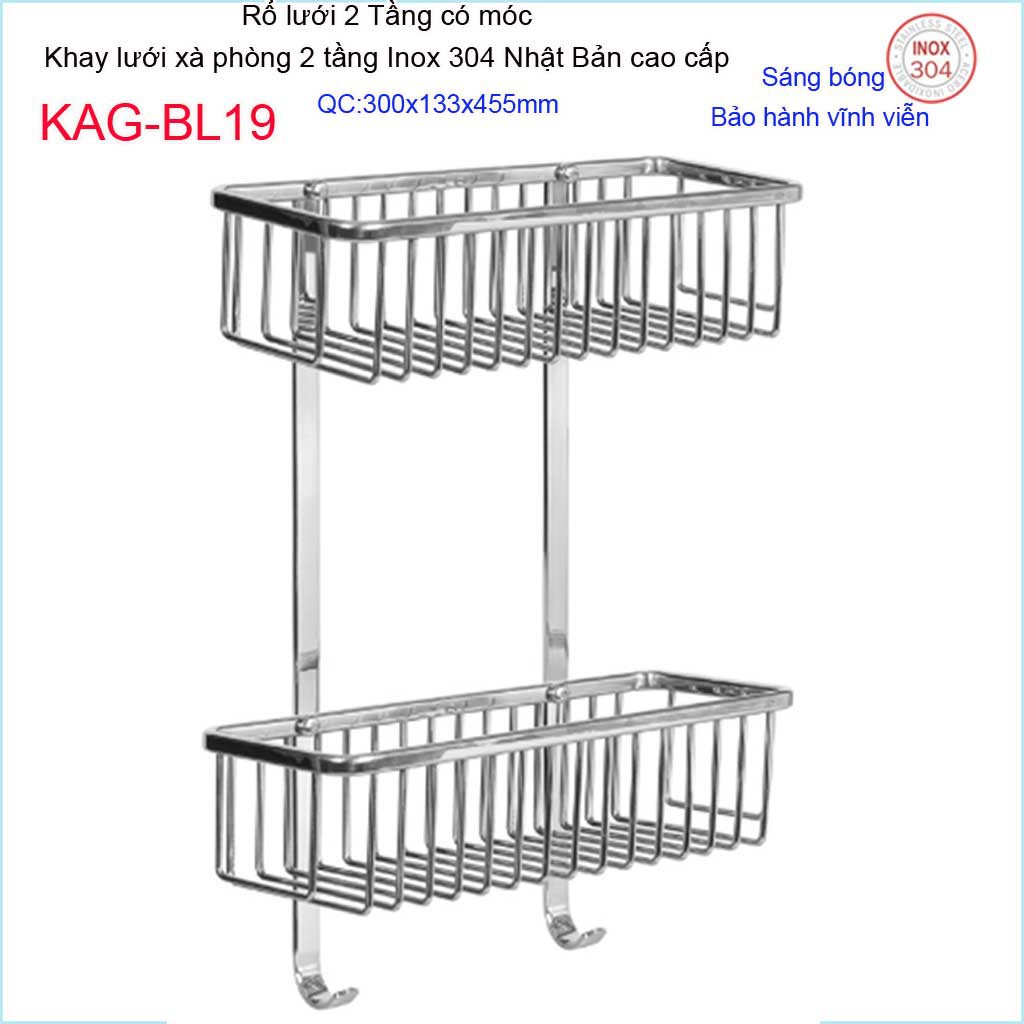 Giới thiệu Khay lưới xà phòng KAG-BL19 Inox Nhật Bản, kệ xà bông dài 300x133x455 mm SUS304 dập khuôn cao cấp sắc sảo tuyệt đẹp