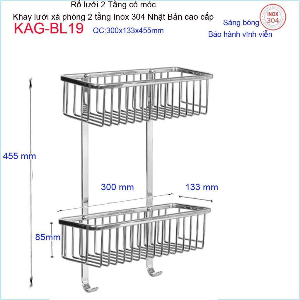 Khay lưới xà phòng KAG-BL19 Inox Nhật Bản, kệ xà bông dài 300x133x455 mm SUS304 dập khuôn cao cấp sắc sảo tuyệt đẹp