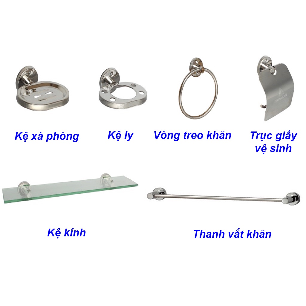 Bộ phụ kiện phòng tắm Inox 6 món giá rẻ, sử dụng tốt cho các công trình nhà ở, nhà trọ
