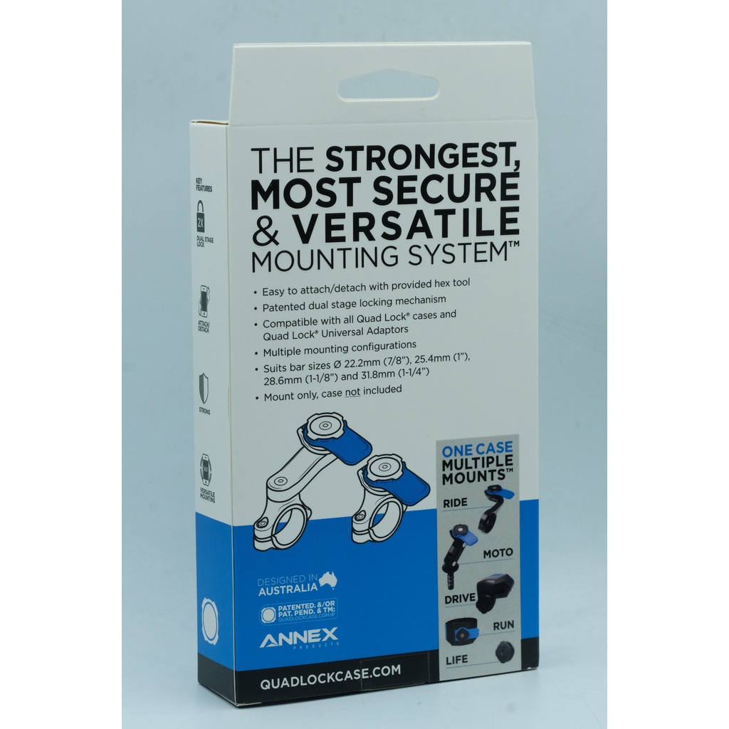 👉 Quad Lock ® Handlebar Mount: Kích thước thanh phù hợp với ⅞ ”(22mm), 1” (25mm), 1-⅛ ”(28mm), 1-¼” (32mm)