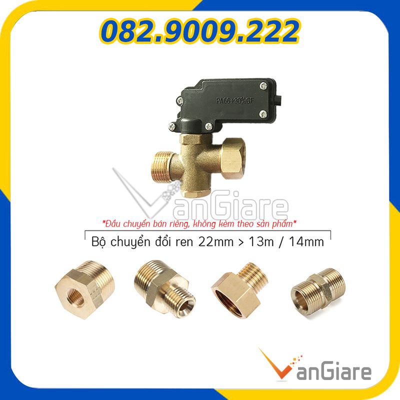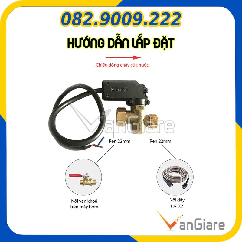 Giới thiệu (Có phụ kiện) Rơ le áp lực tự ngắt nước máy rửa xe dây curoa, dây đai 1hp ren 22mm