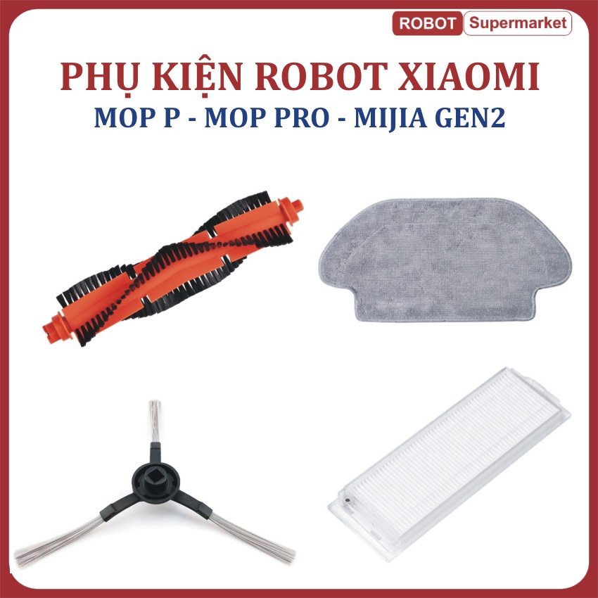 Phụ kiện Robot hút bụi Xiaomi Mop Pro, Mop P, Mijia Gen 2 - Màng lọc hepa, Khăn lau, Chổi giữa, Chổi cạnh