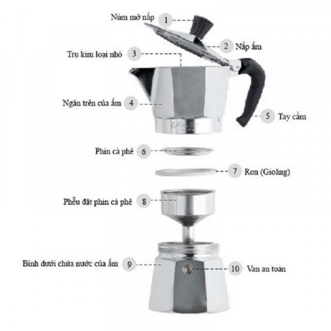 Giới thiệu Phụ kiện thay thế cho ấm pha cà phê moka express 6TZ (6cup 300ml) và 3TZ(150ml) phin lọc, gioăng, phễu lọc, đáy ấm