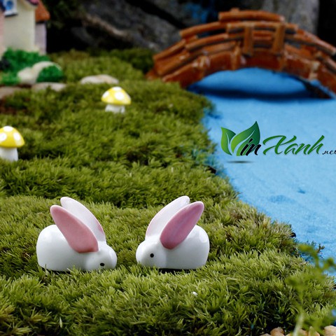 Phụ kiện thỏ trắng tai to trang trí tiểu cảnh, bàn học, nhà cửa