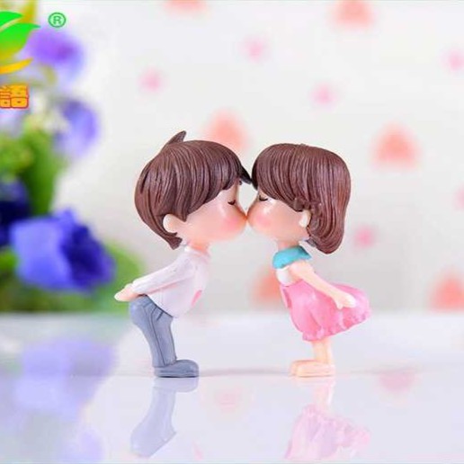 Phụ kiện tiểu cảnh cặp đôi hôn nhau trang trí terrarium, chậu cây mini, sen đá, charm slime