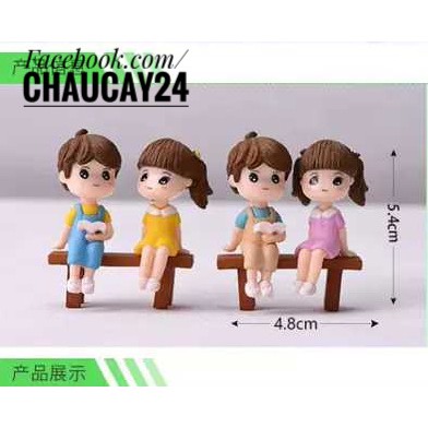 Giới thiệu Phụ kiện tiểu cảnh cặp đôi ngồi học bài (KÈM GHẾ) trang trí terrarium, xương rồng, sen đá, charm slime