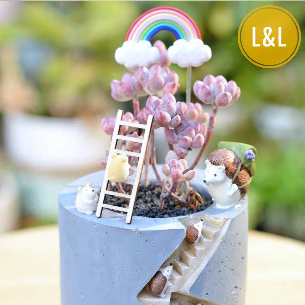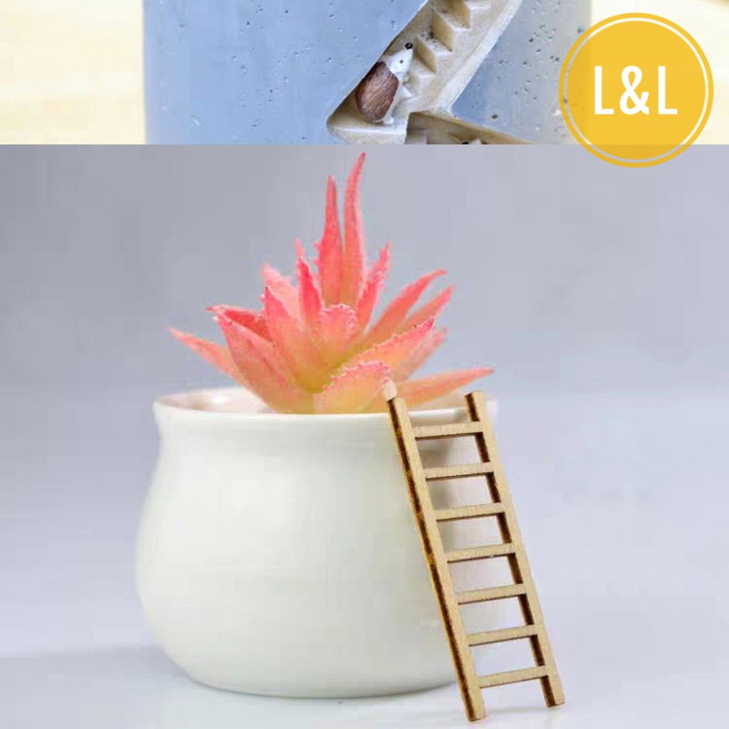 - Cầu thang gỗ là phụ kiện tiểu cảnh được sử dụng phổ biến trong trang trí chậu cây mini để bàn, sen đá, xương rồng, terrarium,...