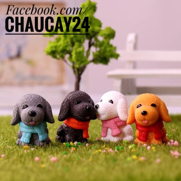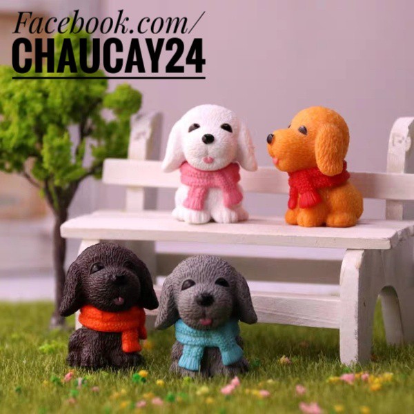 Giới thiệu Phụ Kiện Tiểu Cảnh - Chú Cún Choàng Khăn Trang Trí Chậu Cây, Sen Đá, Cây Cảnh Bonsai