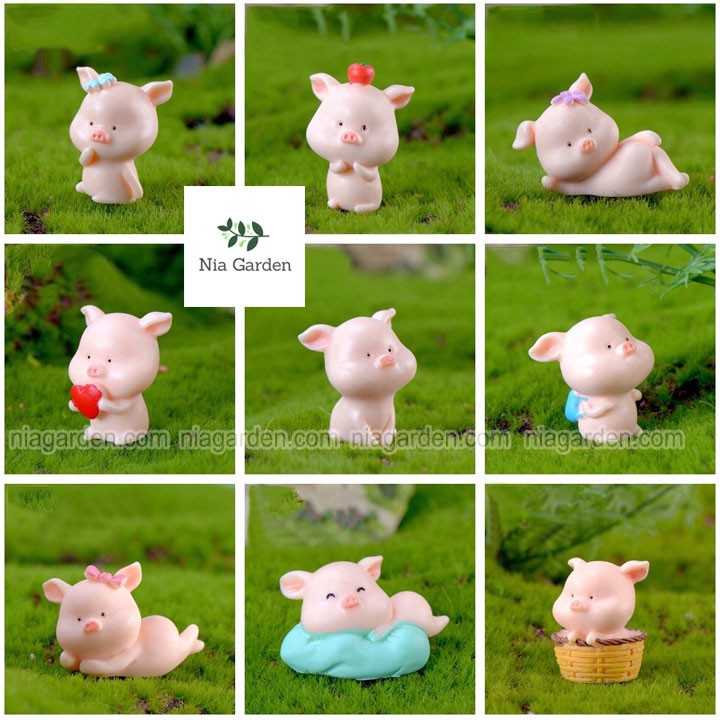 Phụ kiện tiểu cảnh heo hồng mini trang trí cây cảnh, terrarium, bể cá - PKTC