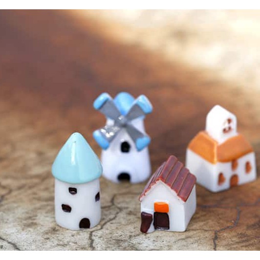 Nhà nhỏ cối xay gió là những mẫu phụ kiện nhà cửa mini đẹp, màu sắc giống thật, sử dụng trang trí tiểu cảnh, sáng tạo các mẫu terrarium đẹp